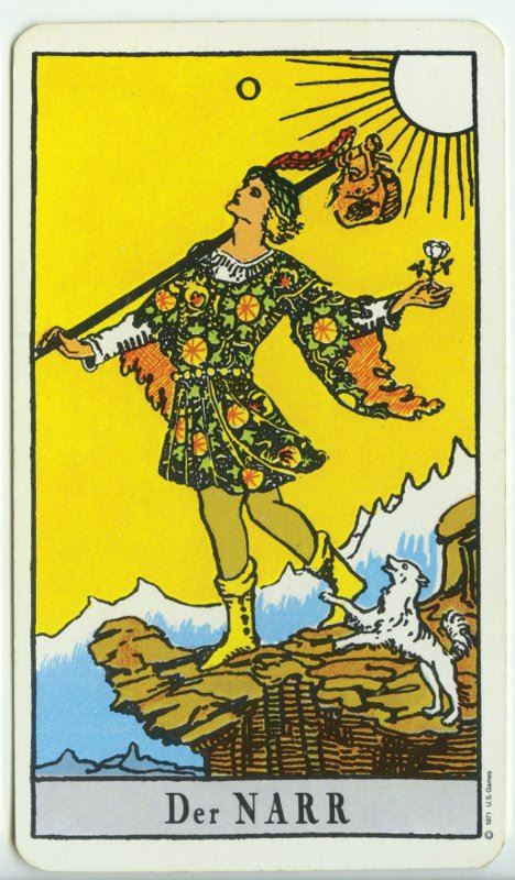 Karta prikazuje: Luda je mladić koji bezbrižno kroči kroz život očiju uprtih u vlastite nade i snove. U ruci nosi bijelu ružu, simbol nevinosti, ljepote i svježine koju nisu nagrdile brige i strahovi. Njegova odjeća posuta je zvijezdama koje simboliziraju blistave ideje. Luda i ne opaža da je na rubu provalije. Vjeruje svojim instinktima koje simbolizira mali bijeli psić.