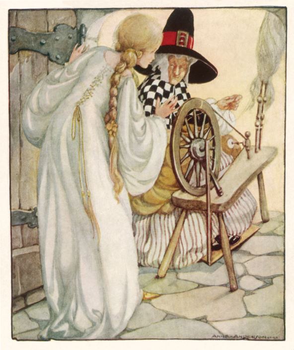 Zaplet bajke počinje kletvom vile koja se osvećuje zato što je isključena iz svečanosti. Simbol je to bolne osjetljivosti Vage na društvenu prihvaćenost. Tipična znatiželja zračnog znaka dovodi Trnoružicu do kobnog vretena na koje se ubola i zaspala. U stoljetnom snu u kuli okruženoj trnjem, njen svijet staje sve dok princ, aktivni, djelatni dio svjesnosti, ne pronađe put do uspavane duše. Probudivši Trnoružicu poljupcem, život se ponovo budi i rascvjetava u ljubavi. Vaga traži sklad i ostvarenje vlastitog identiteta u partnerskoj vezi.