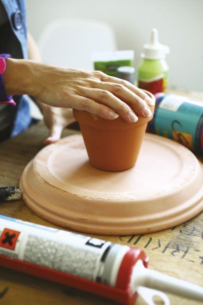 Prošetajte do vlastitog vrta ili balkona, gdje sigurno postoje barem jedan tanjurić i teglica od terakote. Uz njih su vam još za izradu stalka potrebni silikonski pištolj, kist, akrilne boje i lak na bazi smole.