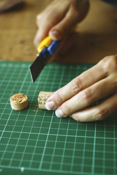 1. Ovisno koju debljinu podloška želite, skalpelom izrežite čep na malene kolutove.