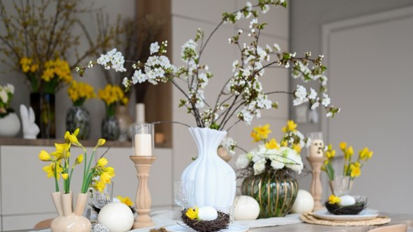 To mi je uvijek najdraži dio, kad dekoracija ne traje samo jedan dan. Grane u cvatu, neutralne vaze, jednostavni cvjetni aranžmani... sve to može ostati i nakon Uskrsa. Dovoljno je maknuti jaja i eventualno gnijezda i već imate proljetni stol koji izgleda jednako lijepo i za običan ručak. Mislim da ljudi sve više cijene upravo tu dugotrajnost i praktičnost.