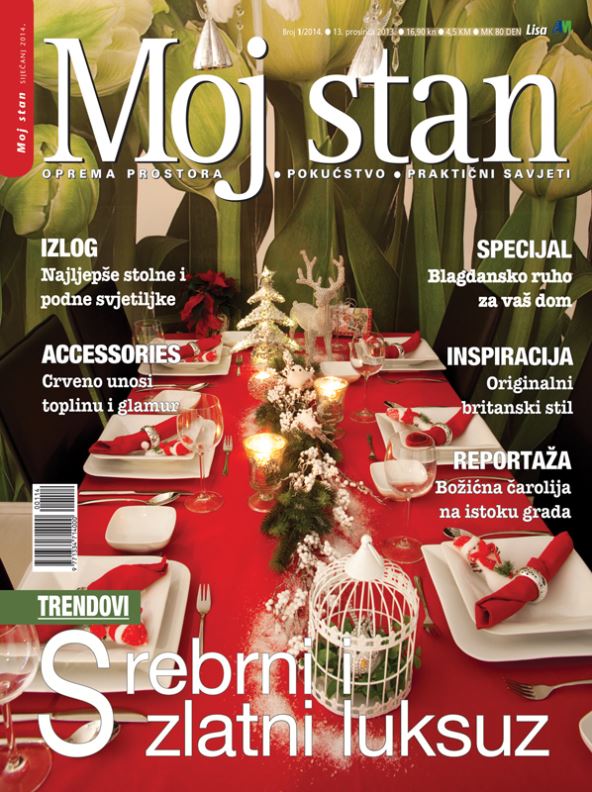 Ovaj petak 13. sretan je datum jer upravo na taj dan ovaj mjesec izlazi Moj stan. Sav se odjenuo u blagdansko ruho, pa u trendovima prebire po srebru i zlatu, nudi accessoire jarke i duboke crvene boje i priča prekrasnu priču o uređenju jednog stana u zagrebačkoj Dubravi.
