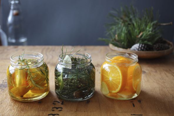 Sastojke za ovaj mirisni i dekorativni dodatak domu naći ćete u svojoj smočnici: staklenke od potrošene zimnice, limune, naranče i začine možete pretvoriti u izvor lijepog mirisa koji se širi u sve prostorije, a ujedno čine i zanimljivu dekoraciju. Dodajte u vodu željene sastojke te ih u loncu zagrijte na štednjaku kako bi se mirisi aktivirali i proširili po prostorijama. Izlijte sadržaj u čistu staklenku i uživajte. Ako imate keramičke posudice koje možete postaviti na prijenosne grijače ili pak posude za fondue, poslužite se lučicama i zagrijavanjem održavajte miris. Da biste postigli jači intenzitet mirisa, u vodu dodajte nekoliko kapi eteričnih ulja naranče, limuna, vanilije... Donosimo vam ideje za četiri varijacije mirisa.