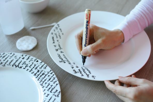 Obični bijeli tanjur možete personalizirati i napraviti posebnim za svoje svadbeno slavlje. Dobro ga operite i osušite. Pripremite pjesmu, poruku svojim uzvanicima, zavjete, možda datum vjenčanja ili nešto slično te ih ispišite na tanjur pomoću flomastera za porculan.