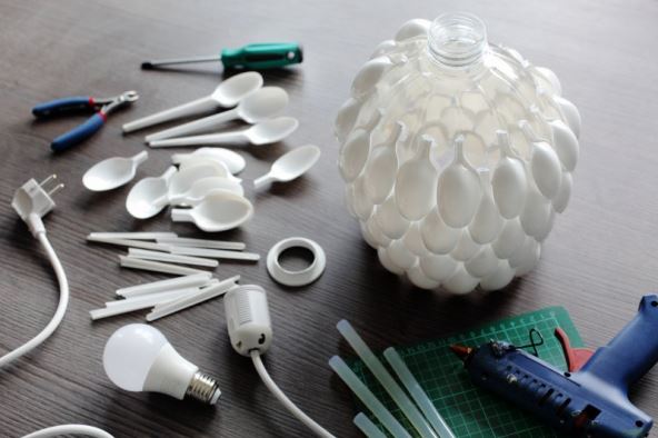 Za izradu sjenila potrebna vam je jedna velika boca u kojoj je bila voda (mi smo koristili bocu od 7 l) te 40-ak plastičnih žlica, silikonsko ljepilo i malo strpljenja. Sjenilo će krasiti vaš životni ili radni prostor, a njime ćete većoj količini plastike dati novu namjenu.