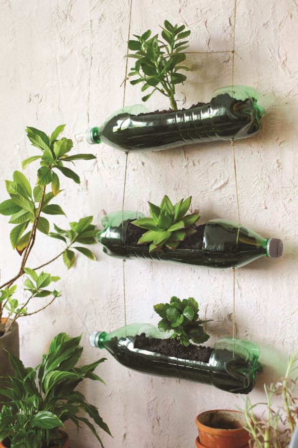 Izradite sami svoje neobične viseće teglice za cvijeće od odbačenih plastičnih boca. Dobro će izgledati na balkonskom ili nekom unutarnjem zidu. Osim boca, potrebni su vam: marker, skalpel, špaga ili flaks, matica za učvršćivanje, škare te, naravno, zemlja i biljke. Ovisno o načinu vješanja „vrta“, dobro će vam doći i kukice.