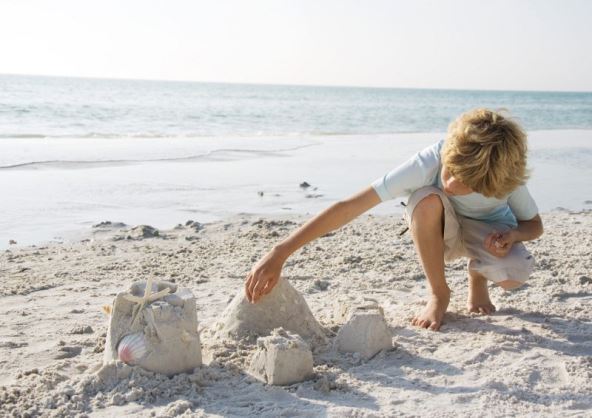 Toplo je ljeto, na prelijepoj plaži mali dječak kleči u pijesku i lopaticom grabi pijesak pa ga stavlja u kanticu. Potom preokrene kanticu i podigne je. Na veselje malog arhitekta, stvorio je mali dvorac od pijeska. On radi cijelo popodne, kopa rovove, gradi zidove od čepova i mostove od štapića lizalica. I sagradit će dvorac.