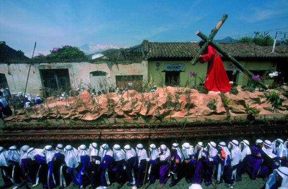 Deseci, čak stotine bratstava prolaze cijeli dan ulicama Antigue i stopalima mrvi mozaike. Ljudi su obučeni u likove iz Isusova doba, u Palestince i Rimljane. Mnogima su glave prekrivene kukuljicama. Koraci u šutnji brišu red iz podnih crteža. Tek kasno uvečer stižu u katedralu i tamo polažu postolja križnog puta. Razilaze se i odlaze kućama. Nekoliko sati kasnije ulice su prazne. Šareni pijesak, piljevina, cvjetne latice i borove iglice izmiješani su u bezličnoj masi na kamenom popločanim ulicama. U zraku se još osjeća svečanost tamjana. Vraćam se u hotel. Na zidu nasuprot hotela zapažam novi veliki grafit kojeg nije bilo ujutro. „Krist je umro za nas!“ čitam svježu boju na oronulom zidu. „Za što mi umiremo?“