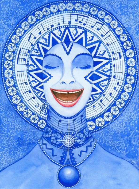 Smještena u području grkljana, ona je centar glasa i riječi i njen su osnovni problem laži. Važna je za pravilno izražavanje i iznošenje unutarnjeg svijeta, a povezana je s učenjem i koncentracijom. Na psihičkoj razini upravlja izrazom, inspiracijom, vještinama govora. Na fizičkom planu javljaju se problemi s vratom i grlom kao i upale uha, problemi sa štitnjačom, bolest zuba i zubnog mesa.