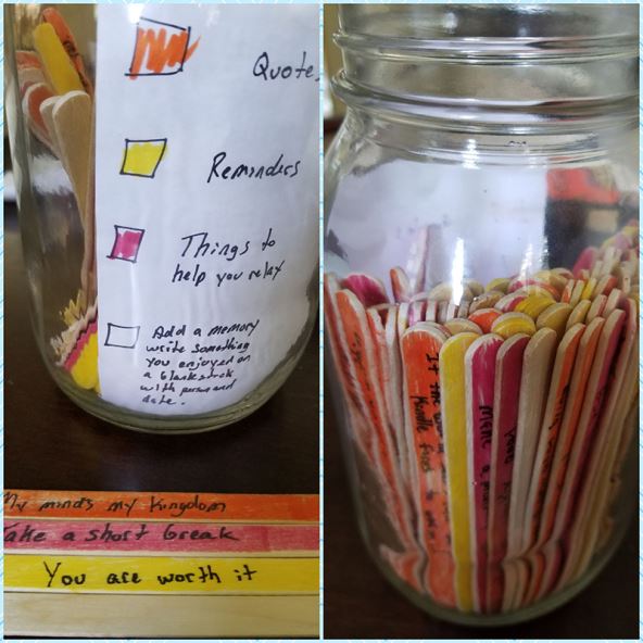 Štapići su bili obojani po “kategorijama“, a na svakom je bio ispisan neki motivacijski citat ili ohrabrujuće riječi, a djevojka je mogla uzeti šareni štapić kada god bi to htjela.