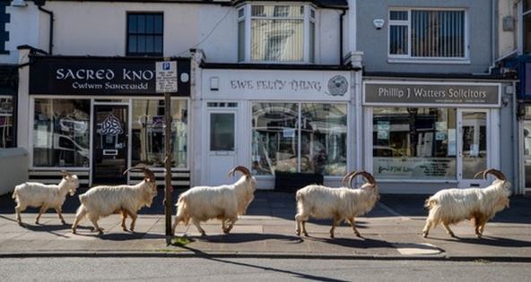 Privučene praznim ulicama, planinske su se koze spustile sa stjenovitih litica Velikog Ormea kako bi istražile velški grad Llandudno.