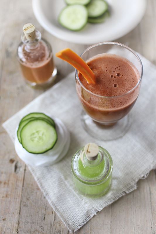 Lubenica sadrži velik postotak vode, što pomaže u detoksikaciji i hidrataciji tijela. Zbog snažnog antioksidansa likopena, utječe i na brže zarastanje rana. Mrkva je bogat izvor provitamina A, koji je dobar za oči, pa je na toj reputaciji ova povrtnica i izgradila svoju popularnost. Koža tretirana mrkvinim sokom dobro podnosi sunce i ravnomjerno tamni.