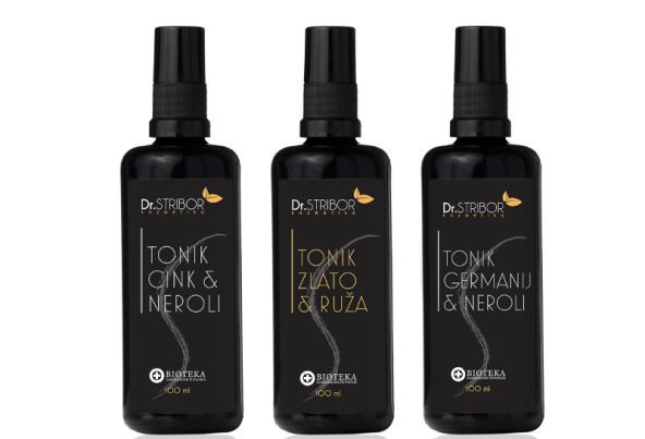 Tonici su zaboravljeno zlato kozmetike. Police su prepune krema, ali ne i tonika, stoga je linija Dr. Stribor kozmetike pokušala ispraviti ovu nepravdu. Sadrže 0% pročišćene vode. Osnovni sastojak su oligoelementi i toliko rijetke esencijalne vode. Tonici su najsvestranija kozmetika te mogu biti osvježenje koži u bilo kojem godišnjem dobu, nježni način čišćenja, vodena podloga kremama ili uljnim i hijaluronskim serumima. Svaki put kada ih nanosite sjetite se da sadrže najvišu vrijednost mineralnih i biljnih sastojaka našeg planeta i s njima Vam dajemo apsolutni dašak luksuza za svaki dan. Svi tonici su konzervirani isključivo srebrom kako bi bili u skladu s drugim oligoelementima koje sadrže. Koriste se - sprejanjem po licu ili kozmetičkom vatom: