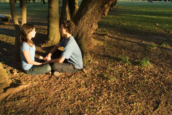 Sjednite u turski sjed, jedno ispred drugog, i stavite ruke na koljena. Zatvorite oči i duboko dišite koncentrirajući se na dah 2-4 minute. Otvorite oči, žena neka okrene dlanove prema gore, a muškarac neka stavi svoje dlanove na njezine. Ponovno duboko dišite spojenih dlanova i gledajte se u oči. Bitno je da ste u sadašnjosti i fokusirani jedno na drugo, misli vam ne smiju lutati. Tako dišite 5 minuta. U pozadini može svirati lagana opuštajuća muzika. Zatim, i dalje se gledajući u oči, duboko udahnite i s izdahom pjevajte „om“ devet puta. Dok se gledate u oči, budite svjesni da ste utjelovljenje božanskih principa muške i ženske energije.