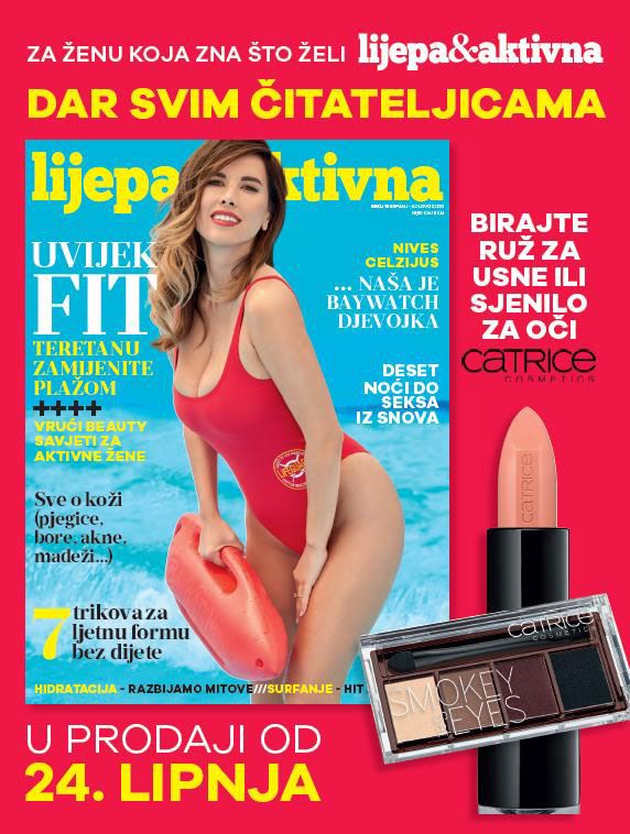 Svaka čitateljica uz kupljeni primjerak Lijepe i aktivne dobiva dar - Catrice ruž u trendi nijansi ili Catrice sjenilo za oči Smokey Eyes Set! Potražite ljetno izdanje na svim kioscima od 24. lipnja!