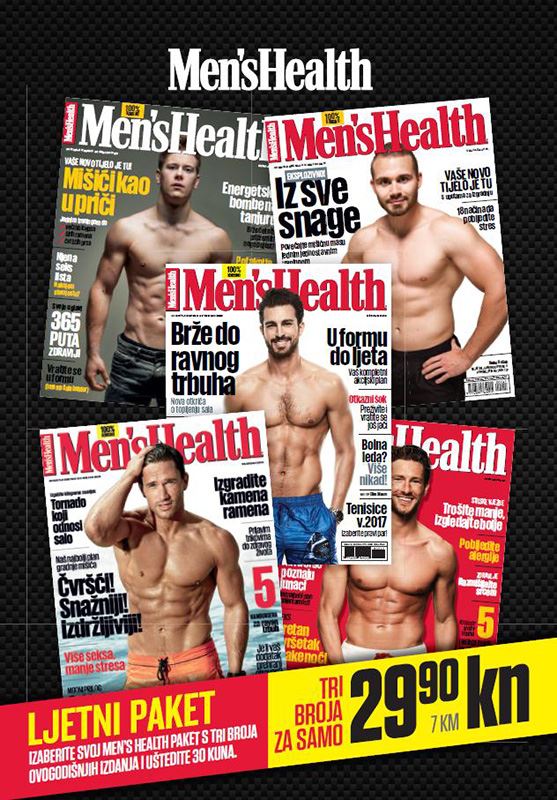 MH ljetni paket Foto: Profimedia/Shutterstock Seks, prehrana, zdravlje, fitness, moda, lifestyle! Men’s Health ljetni paket za 29,90 kuna stigao je na sve kioske 10. srpnja. Izaberite svoj paket s tri broja ovogodišnjih izdanja i uštedite 30 kuna. Uz najbolje građeni časopis za muškarce – Men’s Health – život može biti bolji. Stoga trk na kioske po mensheltovsko ljetno štivo!