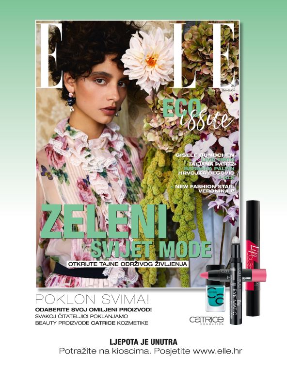 Riješite filmski eko test, otkrijte najzelenije mobilne aplikacije, odlučite se jeste li za ili protiv korištenja pravog krzna te upoznajte domaće kreativce koji uspješno spajaju modu i održivo, eco-friendly poslovanje. Uz brojne zelene teme, za svibanjsko izdanje Ellea ekipa naših londonskih suradnika snimila je ekskluzivnu modnu priču koja najbolje dokazuje da je eko-moda sve samo ne dosadna.
