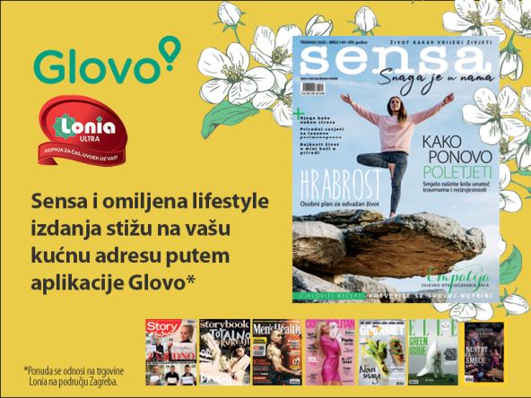 U doba pandemije COVID-19 čitajte Sensu, omiljeni magazin za sretniji život,u sigurnosti svoga doma - naručite ga putem mobilne aplikacije Glovo ili pri kupnji u trgovinama Lonia.