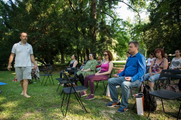 Uz učiteljicu joge Žanu Đogaš, dan započinje Pozdravima Suncu i produbljivanjem praktičnih i teorijskih znanja o Dharma jogi.