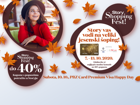 Jesenski Story Shopping Fest je pred vama. Od srijede, 7. listopada u prodaji je novi broj lifestyle tjednika Story koji na dar čitateljima donosi preko četrdeset različitih kupona uz koje štedite 30 % a u subotu, 10. listopada vas očekuje posebno dobar šoping – PBZ Card Premium Visa Happy Day s čak 40% popusta prilikom plaćanja Premium Visa karticom.