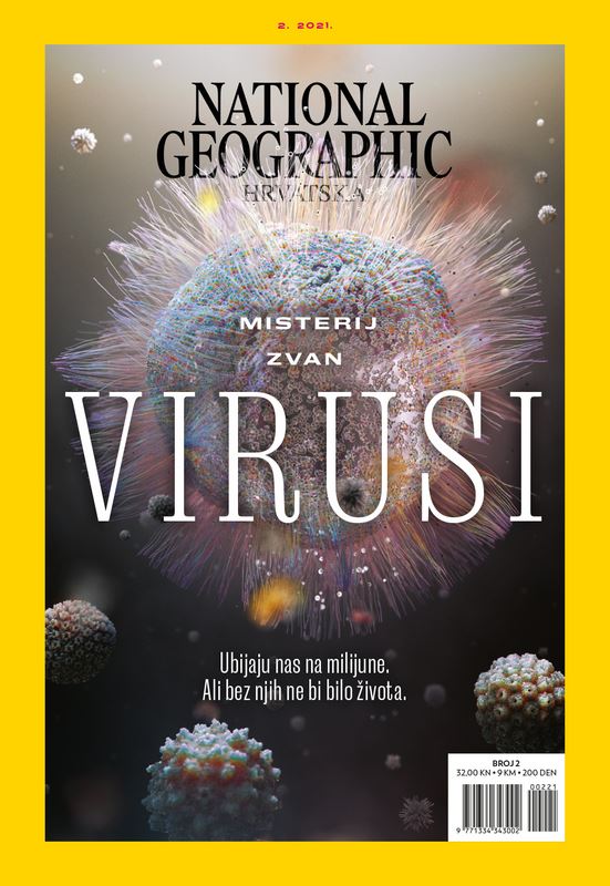 Virusi. Zbog korone im se reputacija čini lošijom nego ikada prije. No jesu li oni doista toliko loši? Ili su nam zapravo potrebni? Sjajan stručni tekst o virusima u ovom broju, u tipičnom stilu National Geographica, predstavlja nam viruse u drugačijem svjetlu – zaslužni su za evolucijski razvoj, čine velik dio našeg DNK, bez njih ne bi bilo života kakav danas poznajemo. Virusi su mnogo manji od ostalih mikroba. u prosjeku između 25 i 200 nanometara. Također su najčešći biološki entitet na našem planetu. Primjerice, kap morske vode sadrži ih više od 10 milijuna.