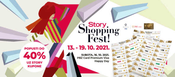 S dolaskom jeseni stiže i novi Story Shopping Fest! Samo u časopisu Story od srijede, 13. listopada, potražite shopping kupone i ostvarite popuste do čak 40% prilikom kupnje u preko 500 trgovina iz svijeta mode i ljepote, diljem Hrvatske. U suradnji s partnerima - PBZ Card i Premium Visa – časopis Story donosi raskošne kupone za kupnju s popustima i do visokih 40 posto u preko 500 trgovina diljem Hrvatske! Story s kuponima na dar potražite od 13. listopada na svim kioscima.