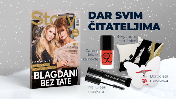 STORY + božićni DAR po izboru - jastučnica by eNVy room, narukvica Borboleta, maskara Click on Me Extra Volume Mascara by Naj Oleari i lak za nokte by Catrice - potražite na kioscima od 21. prosinca!
