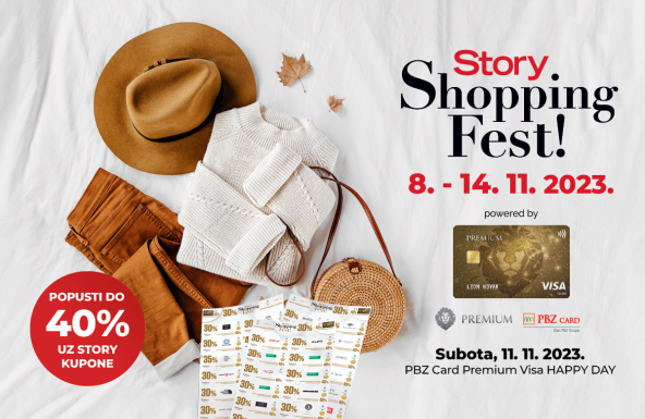 Story Shopping Fest powered by PBZ Card Premium Visa ne smijete propustiti! Stoga potražite Story sa shopping kuponima na dar od srijede, 8. studenoga 2023. godine!