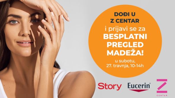 Zagrebački Z Centar, omiljeni shopping centar Z generacije i građana zapadnog dijela grada, u ovu će subotu, 27. travnja, biti i središte zdravih vibracija. Naime, na prigodnom štandu u prizemlju Z centra (u središnjem dijelu, kod pokretnih stepenica), posjetitelji će se od 10 do 14 sati moći prijaviti za besplatan pregled madeža i pri tome osvojiti simbolične poklone Eucerina. Ovaj dermokozmetički brend sa 120-godišnjom tradicijom u njezi i zaštiti kože lica i tijela, zajedno s WMG-om Hrvatska i magazinom Story te marketinškom agencijom Omega komunikacije, i ove godine organizira društveno-odgovorni projekt 'Ne čekaj, CHECKiraj' kojim se educira javnost o važnosti odgovornog ponašanja na suncu. U suradnji s poliklinikama diljem Hrvatske, građani tako imaju priliku besplatno pregledati madeže, a popis poliklinika, kao i link za prijavu, nalazi se ovdje.