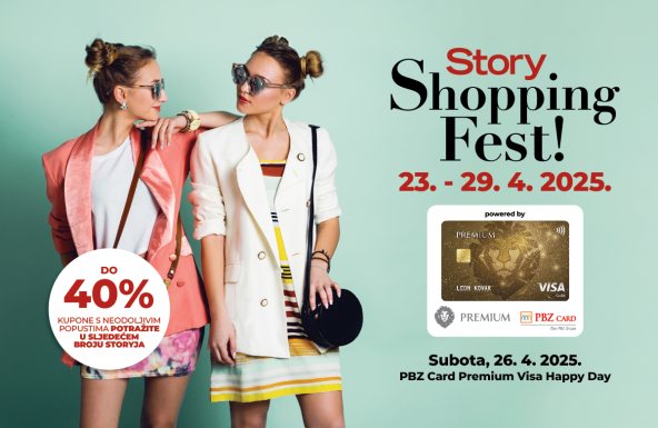 Ne propustite Story Shopping Fest powered by Premium Visa PBZ Card - rezervirajte u kalendaru 23. travnja 2025. godine za kupnju novog Storya sa shopping kuponima na dar.