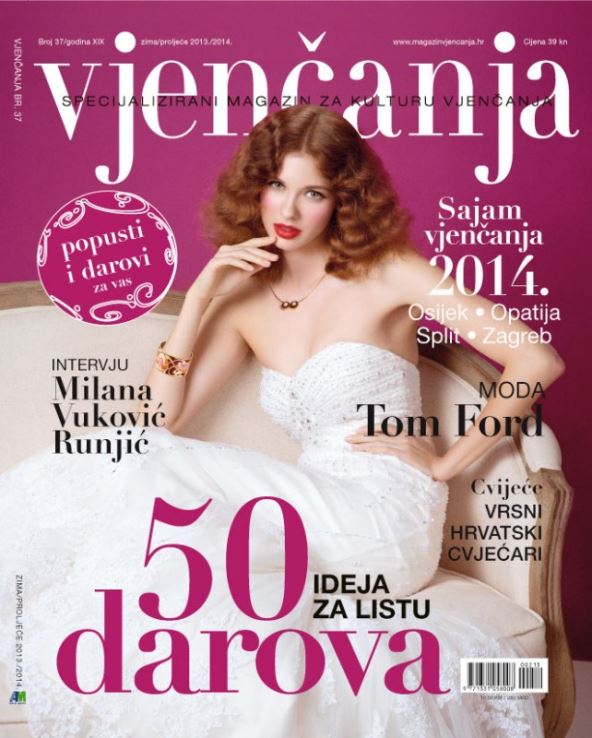 Raskošna naslovnica pozivnicaje svima da otkriju raskoš novog broja časopisa Vjenčanja. U ovom broju ističemo 50 ideja za listu darova te inspirativne priloge o vjenčanoj modi, vrhunskom nakitu, stvarnim vjenčanjima, slasticama i vjenčanim tortama, hotelima i restoranima te bračnim putovanjima.
