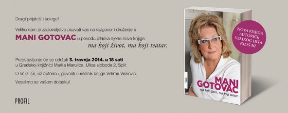 Mani Gotovac je žena teatra; teatar joj je u genima: njezina je majka poznata kazališna glumica Maria Danira; sama Mani je svoj profesionalni vijek posvetila kazalištu: isprva kao kritičarka, potom teatrologinja i dramaturginja, pa naposljetku kao ravnateljica Teatra &TD te prva intendantica hrvatskoga nacionalnog kazališta u povijesti (HNK-a u Splitu, pa potom u Rijeci).