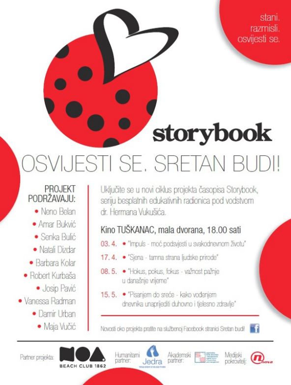 Polaznici radionice naučit će kako se na pravilan način suočiti s problemima, kvalitetno ih svladati i osloboditi se strahova te ograničenja koji sputavaju osobu da živi život punim plućima. Radionica Sjena – tamna strana ljudske prirode održava se u sklopu projekta „Osvijesti se. Sretan budi!“ koji je pokrenuo magazin StoryBook.