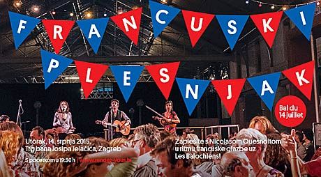 Le Plesnjak će u 19.30 sati svojim plesom otvoriti francuski plesač s adresom u Zagrebu Nicolas Quesnoit, koji će građane podučiti plesnim koracima uz ritam staroga Pariza. Nakon njega slijedi koncert francuskog benda Les Balochiens, a sve vješte i nevješte plesače očekuju i neizostavni hitovi francuske šansone, tipični zabavni francuski plesovi, ali i poznati ritmovi od valcera do tanga.
