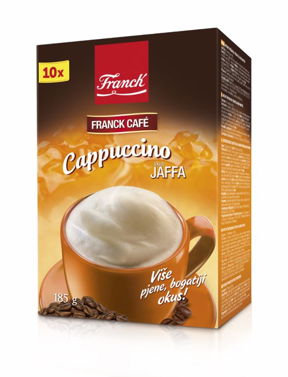 Franck café Cappuccino bogatiji je za još jedan okus inspiracije - Franck Café Cappuccino okus Jaffa! Mnogima dobro poznata i omiljena kombinacija bogatog okusa čokolade, biskvita i fine naranče od sada je dostupna i u šalici Franck Café toplog, kremastog cappuccino napitka.