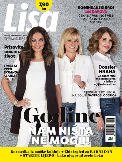 Posebno za ovo rođendansko izdanje, naslovnicu magazina Lisa krase i tri dame koje svojim primjerima i pričama pokazuju da godine nisu bitne: glumica Sanja Vejnović, pjevačica i voditeljica Sanja Doležal te bivša manekenka i danas uspješna poslovna žena Sandra Vranješ koje su se složile da im godine ništa ne mogu.