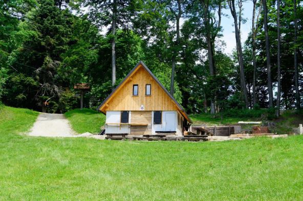 U kućici Powered by Medveščak, kako se objekt sad službeno zove, a nalazi se na lijevoj strani uspona prema televizijskom tornju i vidikovcu, ima galerija, dakle „kat“ prilagođen djeci i njihovoj igri, dok se u prizemlju nalaze stolovi i šank. Tu je i kamin, pokoji ležaj na gornjoj etaži, pa sve podsjeća na pravu slatku austrijsku kućicu u Alpama u kojoj se može i dobro pojesti.