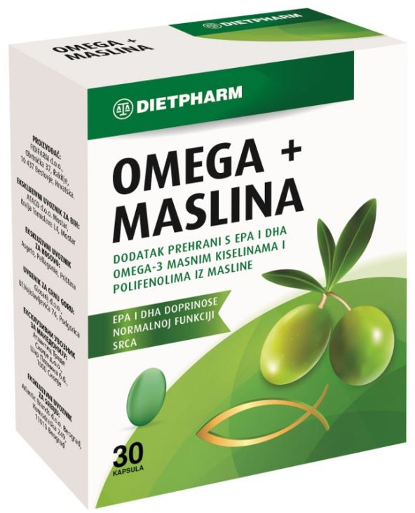 Dietpharm je osmislio Omega + Maslina kapsule koje sadrže antioksidanse iz ploda masline i omega 3 masne kiseline.