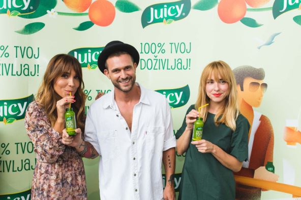 Juicy 100% iskoristio je toplu ljetnu večer kako bi u popularnom zagrebačkom Mojo baru u srijedu predstavio novu kampanju „100 tvoj doživljaj. 100% Juicy“. U 100% opuštenoj i zabavnoj atmosferi sve je bilo u znaku Juicy 100% sokova u novim bočicama osvježenog dizajna koje su tom prigodom predstavljene, a velik broj okupljenih osoba iz javnog života poput voditeljica Ive Šulentić i Marijane Batinić, pjevača Luke Nižetića, fotografkinje Mare Milin i ostalih imali su priliku uživo doživjeti različita iskustva što je i temelj nove kampanje.