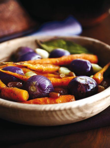Namočite glinenu posudu u vodu najmanje 10 minuta. Odlučite se za verziju koju želite pa njome začinite povrće, izmiješajte sve sastojke, istresite ih u glinenu posudu i zalijte temeljcem. Stavite u hladnu pećnicu, uključite je na 180 stupnjeva i pecite oko 45 minuta.