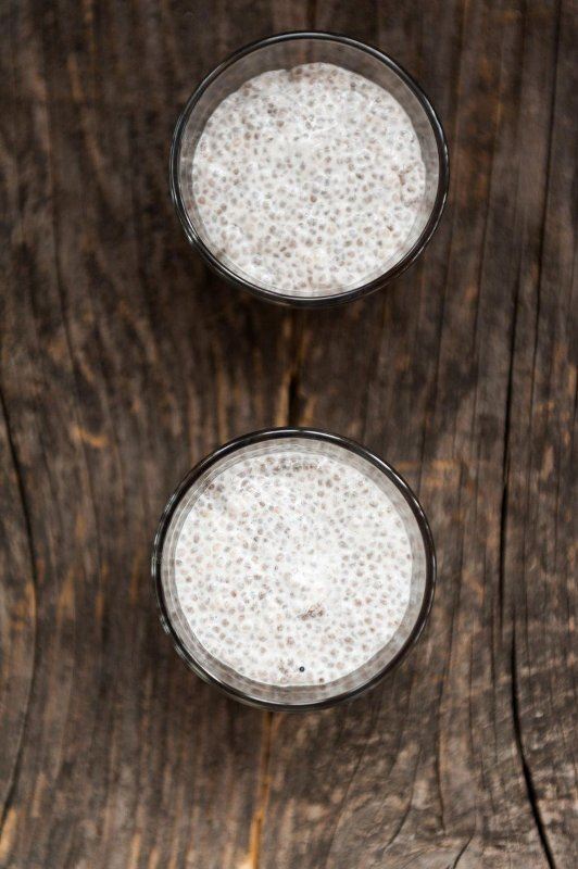 U staklenoj posudi s poklopcem pomiješajte 1/2 šalice bijelih chia sjemenki i 2 1/2 šalice vode. Dobro promiješajte. Na sobnoj temperaturi može stajati 8 sati, a u hladnjaku i do tjedan dana. Ovo je baza i dovoljna je za četiri obroka kaše od chije. Što dulje stoji, trebat će joj više tekućine. Ako želite, umjesto vode možete koristiti mlijeko ili napitak od riže, lješnjaka... Tada će rok trajanja biti četiri dana.