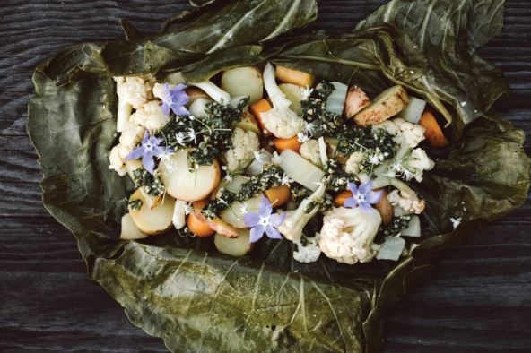 Odrežite stabljike listova pa ih narežite. U velikom loncu zakuhajte vodu pa kratko blanširajte listove kelja. Isperite ih hladnom vodom, ocijedite i stavite na tanjur. Krumpir narežite na ploške pa ga kratko kuhajte u slanoj vodi s cvjetačom i mrkvom, dok malo ne omekšaju. Ocijedite te nekoliko minuta pržite na ulju s nasjeckanim lukom i začinima. Zagrijte pećnicu na 180 °C, nauljite posudu za pečenje. Povrće začinite limunovim sokom, nakapajte mješavinom nasjeckanog peršina i češnjaka u ulju i zamotajte u listove kelja kao sarmu. Složite ih u posudu i pecite oko 20 minuta.