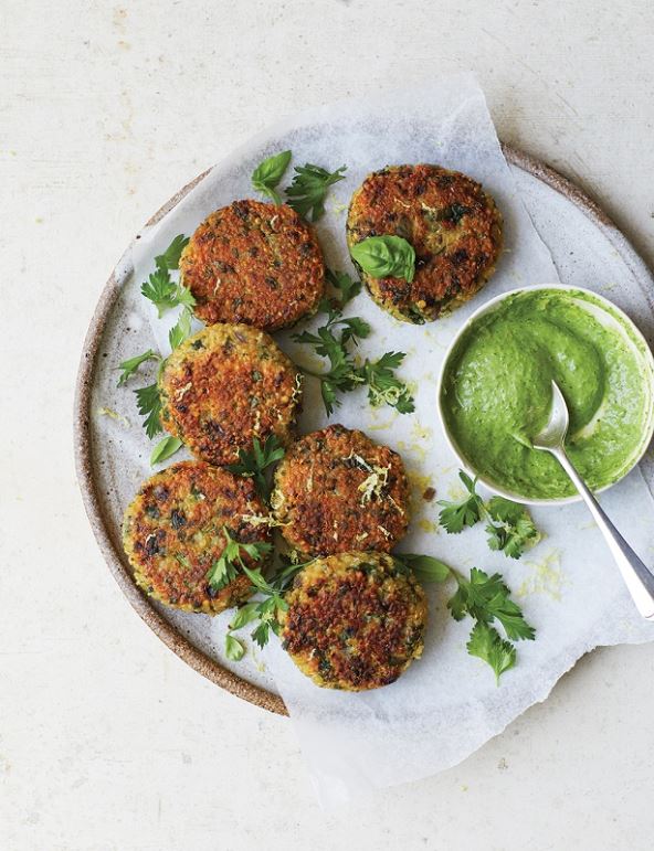 I topli i hladni čine ukusan vegetarijanski burger, a također su sjajni na zabavama kao canapé zalogaji posluženi s chimichurri jogurtom.