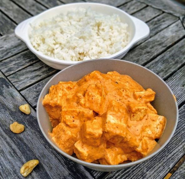 Ovo je moja varijanta poznatog indijskog jela koje se zove shahi paneer, odnosno, bijeli sir paneer u začinjenom kremastom umaku od indijskih oraščića i rajčice. To je 'kraljevsko' jelo sa sjevera Indije. Paneer je vrsta kravljeg sira koji ima neutralan okus i nije slan. Po teksturi, najsličniji mu je sir od soje - tofu, što je još bolja opcija jer onda odgovara i veganima.