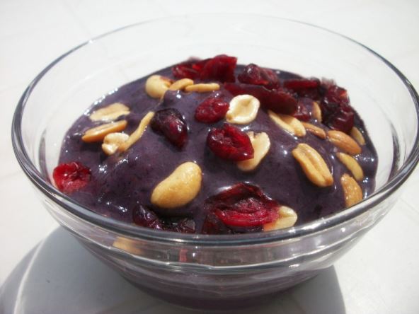 Priprema sladoleda je jednostavna. Stavite sve sastojke u mikser (osim kikirikija i brusnica) i izmiksajte ih 30-ak sekundi. Stavite sladoled u zdjelicu ili čašu, pospite ga kikirikijem i brusnicama i uživajte!