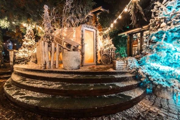 Dobro nam poznato, prirodno dvorište pretvoreno je u snježnu zimsku šumu, s brezinim granama, desetak okićenih božićnih borova, sanjkama i rustikalnom kočijom te brojnim božićnim dekoracijama, prizor koji izgleda kao kadar iz božićnog filma. Srce zimske priče su upravo iglui. Prekriveni umjetnim snijegom, ugrijani i osvijetljeni prekrasnim božićnim lampicama, uređeni božićnom dekoracijom koju je zajedno osmislio cijeli kolektiv Botanista, ovi mali domovi u zimskom krajoliku nude doživljaj kakav se rijetko viđa, privatnu božićnu bajku samo za vas i vaše najbliže.