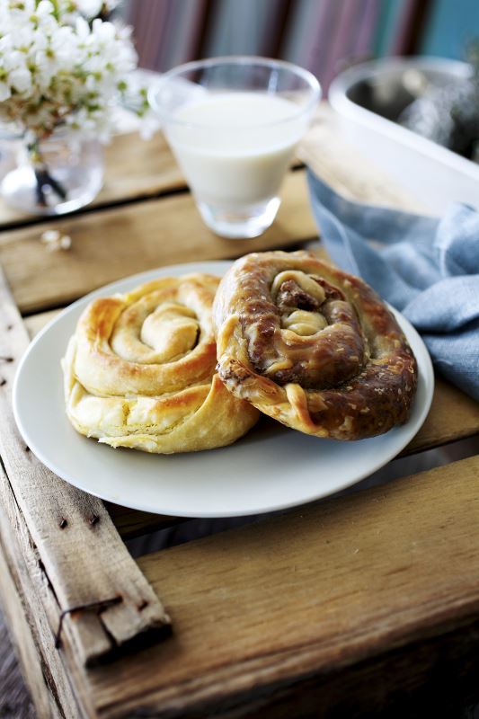Zamijesite glatko tijesto od brašna, soli, vode, ulja i jabučnog octa. Ostavite ga pokrivenog oko 30 minuta. U multipraktiku usitnite luk i češnjak pa ih propirjajte na suncokretovu ulju i posolite. Usitnite seitan s tamarijem i senfom. Dodajte luku i začinite. Pirjajte dok skoro sva tekućina ne ispari. Po potrebi dodajte malo suncokretova ulja. U multipraktiku pomiješajte sve sastojke za nadjev od tofua. Tijesto podijelite na 4 komada. Svaki dio razvaljajte i razvucite u što tanje tijesto pravokutna oblika. Nadjenite dvije trećine tijesta pa ga savijajte prema dijelu bez nadjeva. Pite stavite na papir za pečenje u plitici za pečenje, premažite mješavinom suncokretova ulja i malo vode te pecite oko pola sata.