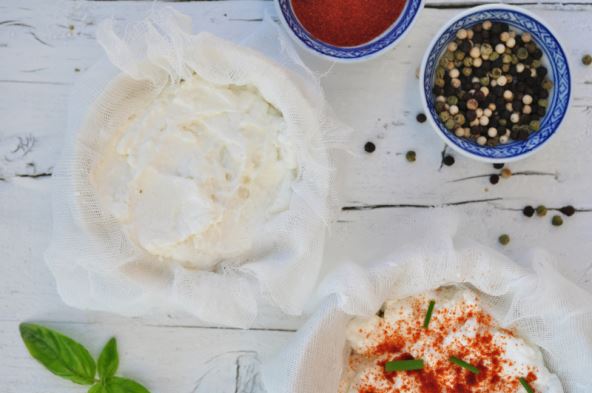 Vrećicom za cijeđenje ili duplom gazom obložite cjedilo, stavite ga na veću zdjelu pa ulijte kefir. Ostavite da se dio sirutke ocijedi pa preklopite otvor vrećice/gaze da kefir ne bi iscurio. Na zatvorenu vrećicu/gazu stavite manju zdjelu i stavite u hladnjak (najbolje da polica hladnjaka lagano pritišće zdjelu pa će se sir brže ocijediti). Ostavite da odstoji nekoliko sati (za malo rjeđi namaz) ili preko noći (za gušći namaz). Nakon cijeđenja sir pažljivo izvadite iz vrećice/gaze, dodajte začine i poslužite uz domaći kruh, krekere ili sirovo povrće. Ostatak sirutke sačuvajte i iskoristite u smjesama za kruh, palačinke i kolače kao zamjenu za mlijeko ili vodu.