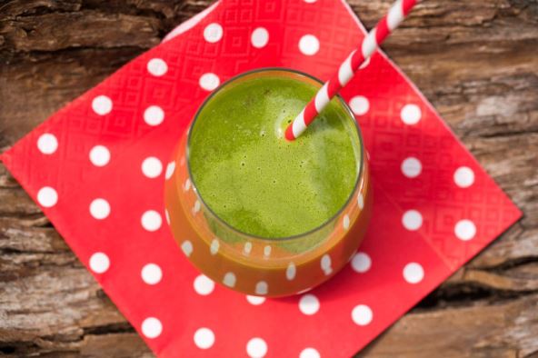 Listove kelja natrgajte na manje komade; pritom uklonite tvrde dijelove. Stabljike celera, zelene dijelove mrkve i zelenu jabuku narežite na manje komade. Limetu i đumbir ogulite i narežite. Sve sastojke stavite u blender i ulijte vodu (za početak 2 čaše; treću ulijte ako je napitak pregust za vaš ukus). Miksajte dok se svi sastojci potpuno ne usitne.