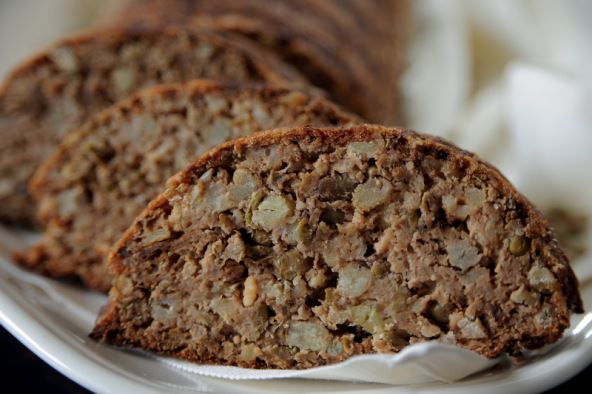 Zagrijte pećnicu na 220 °C. Nauljite kalup za kruh. U velikoj posudi pomiješajte sve sastojke osim krušnih mrvica. Smjesu ravnomjerno rasporedite u kalup i pecite 40 minuta. Zatim je pospite krušnim mrvicama te pecite još 10 minuta. Neka kruh prije rezanja odstoji 10 do 15 minuta.